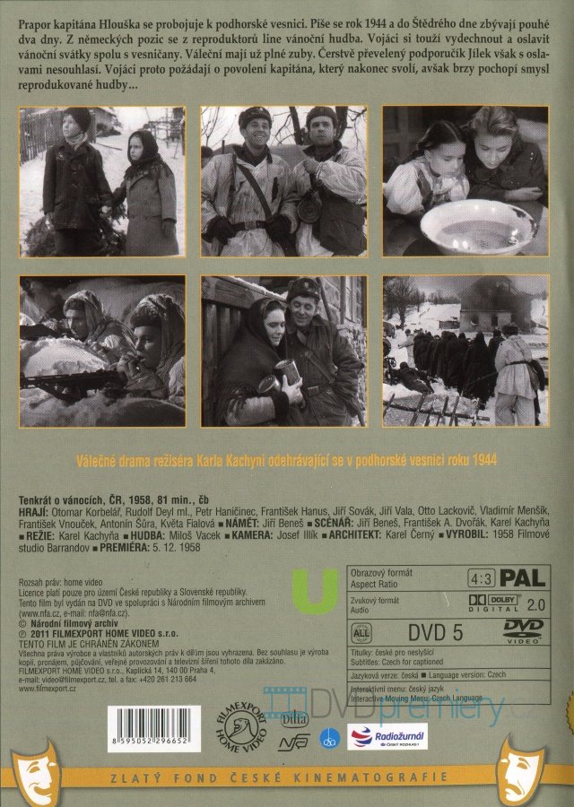 DVD film Tenkrát o vánocích [1958]. Československý film pro pamětníky. Dolby Digital. Válečné drama režiséra Karla Kachyni odehrávající se v podhorské vesnici roku 1944.