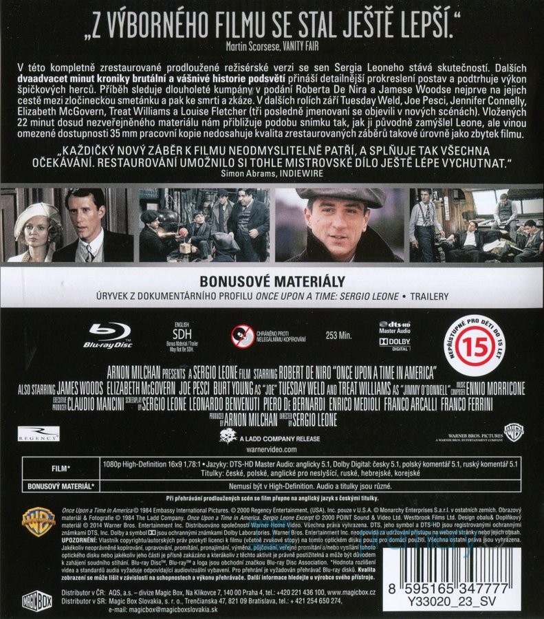 Blu-ray film Tenkrát v Americe HD [1984]. Český dabing. České titulky. Dolby Digital. Hrají: Robert De Niro. O 22 minut delší režisérská verze.