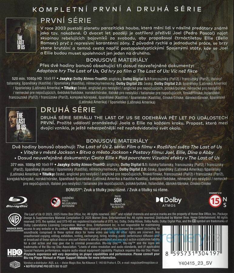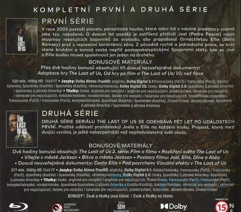 Blu-ray kompletní 1.-2. série seriálu The Last of Us. Český dabing. Joel a Ellie bojují o přežití v postapokalyptické Americe. Napětí, důvěra a nebezpečí na každém kroku.