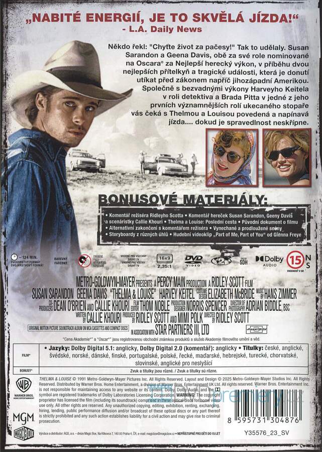 DVD film Thelma a Louise [1991]. České titulky. Dolby Digital. Kultovní road movie o dvou ženách na útěku. Víkendový výlet se změní v dramatický boj o svobodu a přežití.