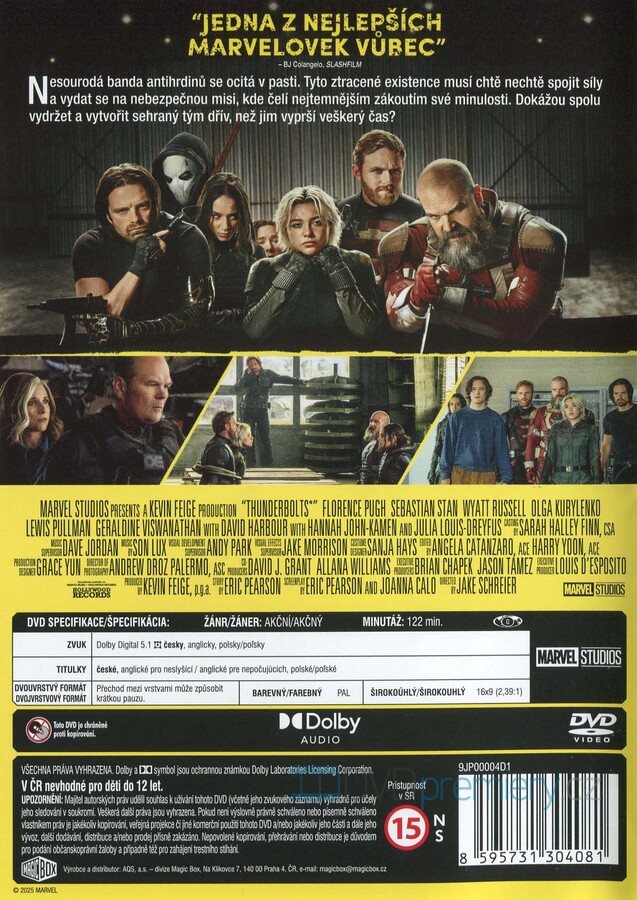 DVD film Thunderbolts* - Noví Avengers [2025]. Český dabing. České titulky. Dolby Digital. Thunderbolts*: Neuctivá parta antihrdinů v čele s Yelenou Belovou. Návrat oblíbených postav MCU v akčním týmovém filmu!