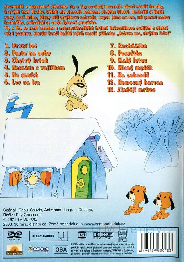 DVD Tip a Tap 1 - Nezapomenutelné příběhy dvou štěňátek a strýčka Fida. DVD obsahuje 13 příběhů.