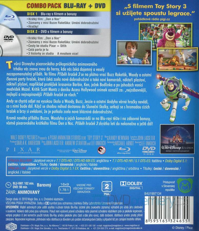 Blu-ray + DVD film Toy Story 3: Příběh hraček HD [2010]. Český dabing. České titulky. Dolby Digital. Tvůrci průkopnického animovaného trháku vás znovu zvou do herny, kde vás čeká dojemný a veselý nezapomenutelný příběh.