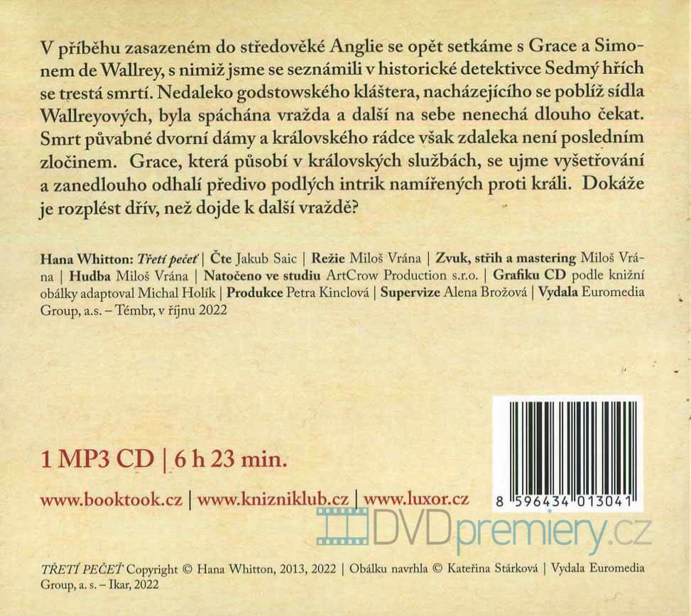 Audioknihu Třetí pečeť napsala autorka: Hana Whitton, čte: Jakub Saic. Celková stopáž: 6 hodin, 23 minut.