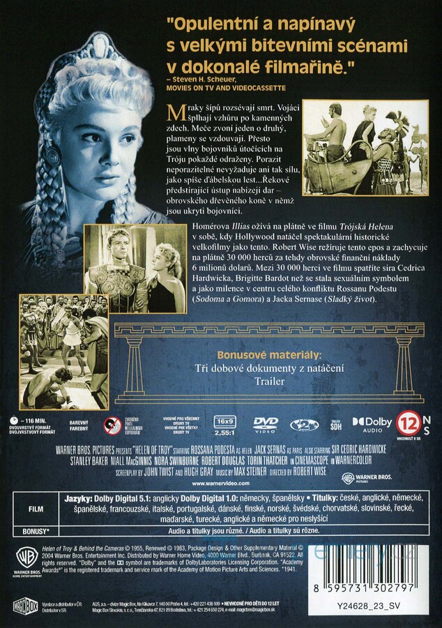 DVD film Trójská Helena [1956]. České titulky. Dolby Digital. Šípy, meče a plameny obklopují nedobytnou Tróju. Když síla nestačí, přichází lest. Epická podívaná 50. let ožívá na plátně v plné kráse.
