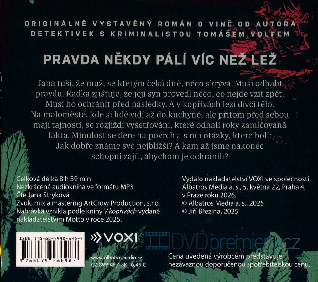 Audiokniha od autora: Jiří Březina, čte: Jana Stryková. Délka nahrávky: 8 hodin, 39 minut. Tělo v kopřivách odhalí tajemství maloměsta. Jak daleko zajdeme, abychom ochránili ty, které milujeme?