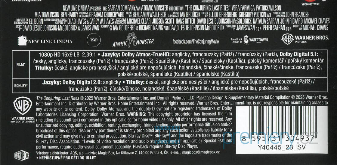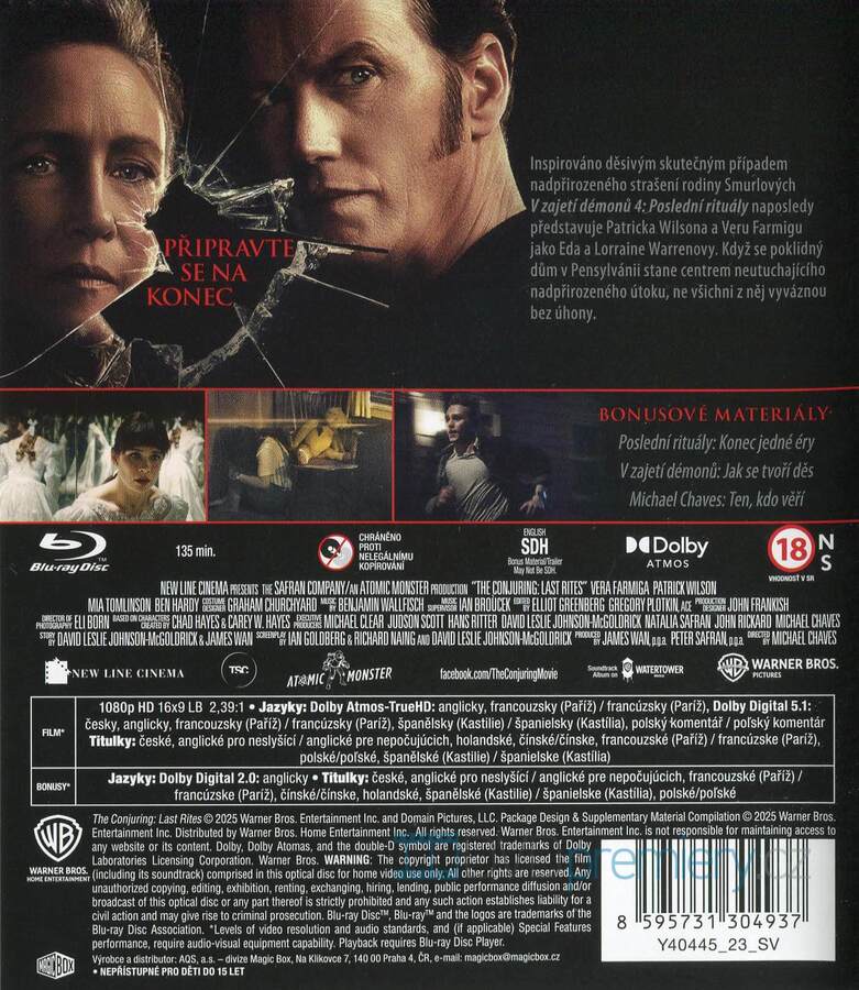 Blu-ray film V zajetí démonů 4: Poslední rituály HD [2025]. Český dabing. České titulky. Dolby Digital. Dolby Atmos. Poslední případ Warrenových: Záhadné entity a atmosféra, co se vryje pod kůži. Podle pravdy.