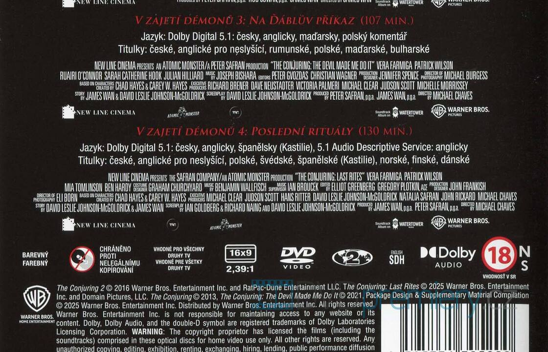 DVD kolekce obsahuje filmy: V zajetí démonů 1-4. Český dabing. České titulky. Dolby Digital. Nejděsivější případy legendárních vyšetřovatelů. Skutečné události plné emocí a hrůzy.