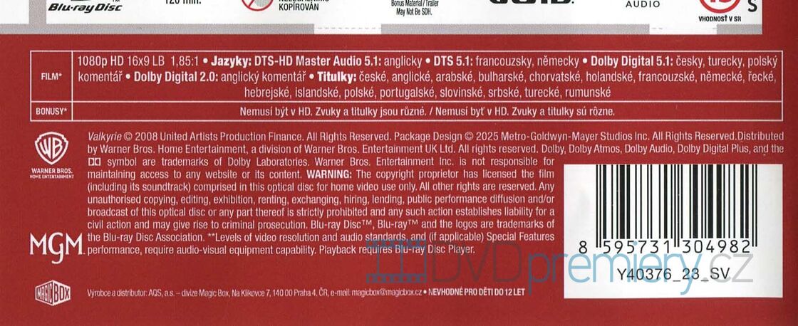 Blu-ray film Valkýra HD [2008]. Český dabing. České titulky. Dolby Digital. Skutečný příběh plukovníka Stauffenberga (Tom Cruise) a jeho mise zabít Hitlera.