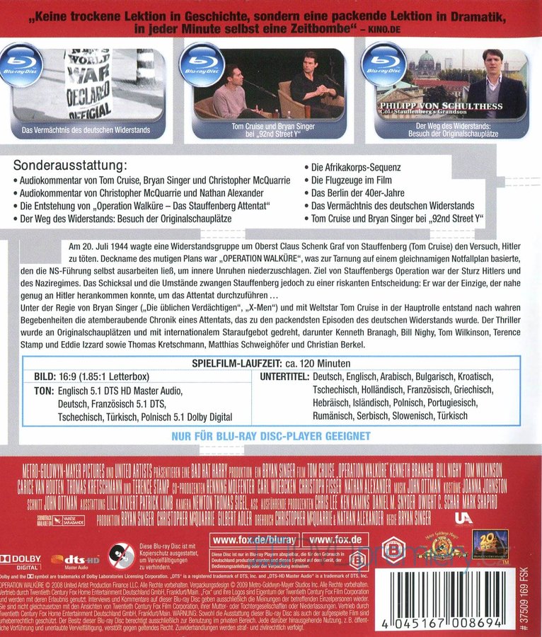 Neuvěřitelný skutečný příběh plukovníka Clause von Stauffenberga (Tom Cruise) se stal námětem pro strhující thriller, který se vrací k odvážnému a důmyslnému plánu na odstranění Adolfa Hitlera - jednoho z největších tyranů celých dějin lidstva. Ve vedlejších rolích filmu Valkýra, který přináší strhující napětí a vzrušení od začátku až do konce, se představují Kenneth Branagh, Bill Nighy, Tom Wilkinson, Terence Stamp a Eddie Izzard!