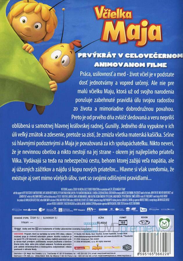 DVD film Včelka Mája ve filmu [2014]. Český dabing. Dolby Digital. Dovoz SK. Mája se tedy s Vilíkem vydává na nebezpečnou cestu plnou dobrodružství, kouzel, zábavy a nových přátel.