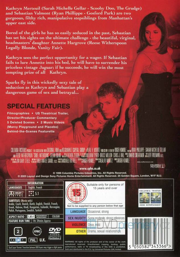 DVD film Velmi nebezpečné známosti [1999]. České titulky. Dolby Digital. Dovoz. Sarah Michelle Gellar a Ryan Phillippe představují dvojici zhýčkaných sourozenců ve slastném a vzrušujícím příběhu o pokušení, odplatě a dobývání.