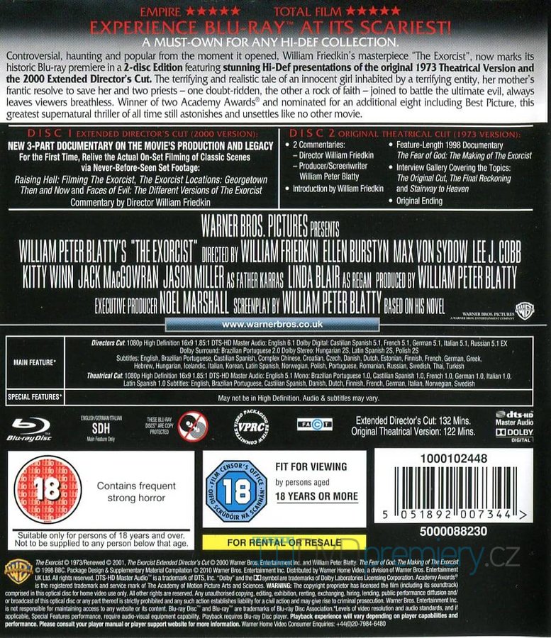 TEN NEJDĚSIVĚJŠÍ BLURAY. NEZBYTNÁ SOUČÁST KAŽDÉ HI-DEF SBÍRKY. Vymítač ďábla, od svého vzniku stejně kontroverzní jako populární, zažívá svou skvostnou Hi-DEF premiéru jako prodloužený režisérský sestřih z roku 2000.