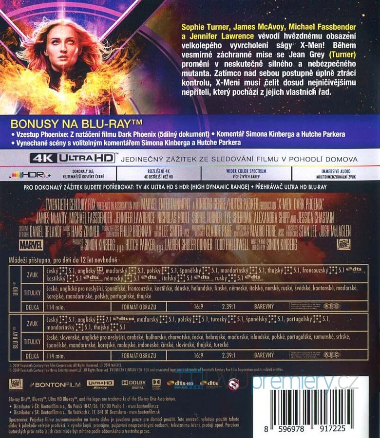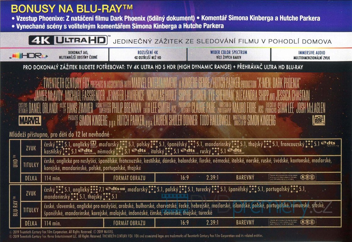 Užijte si jedinečný zážitek při sledování 4K UHD BLU-RAY s filmem X-Men: Dark Phoenix (2019) nyní 4x ostřejší než v rozlišení HD. Zdarma je také přiložen FULL HD BLU-RAY disk s filmem. Obsahuje HDR pro jasnější, hlubší a živější barvy.