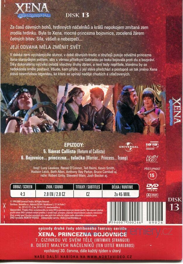 DVD film Xena 2. série DISK 13 [1999]. Český dabing. Dolby Digital. Za časů bohů a králů zrodila neklidná zem hrdinku - Xenu, mocnou princeznu bojovnici, zocelonou žárem bitev.