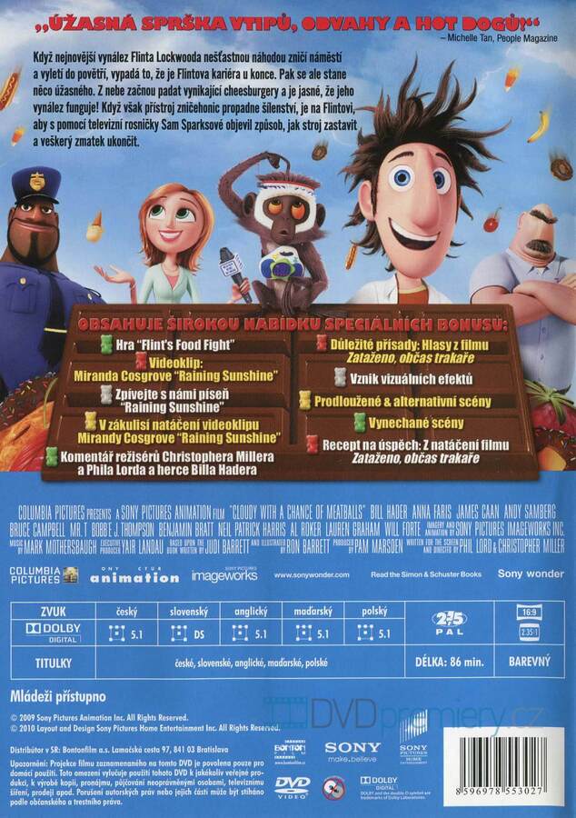 DVD film Zataženo, občas trakaře [2009]. Český dabing. České titulky. Dolby Digital. Déšť skvělého jídla a dokonalé zábavy.