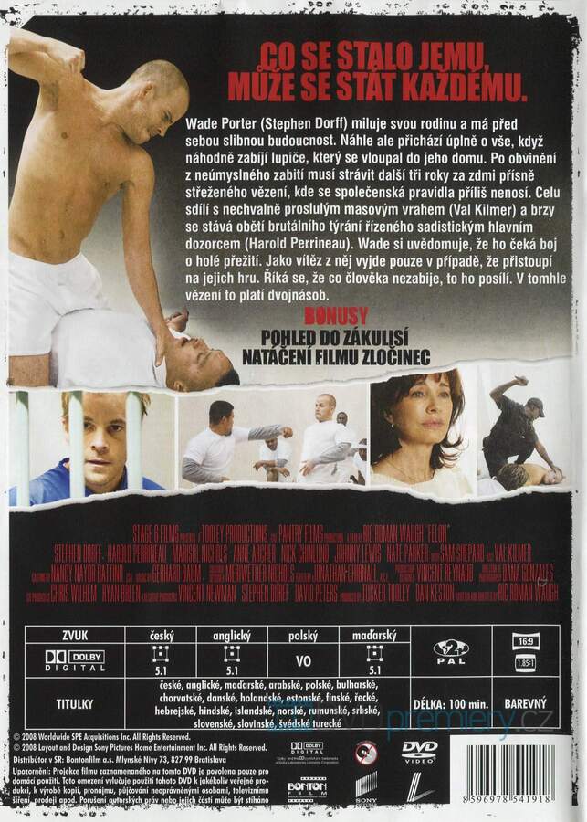 DVD film Zločinec [2008]. Český dabing. České titulky. Dolby Digital. Jeden omyl. Tři roky pekla. Wade musí přežít brutální vězení, kde platí jen jediné pravidlo – zabij, nebo buď zabit.