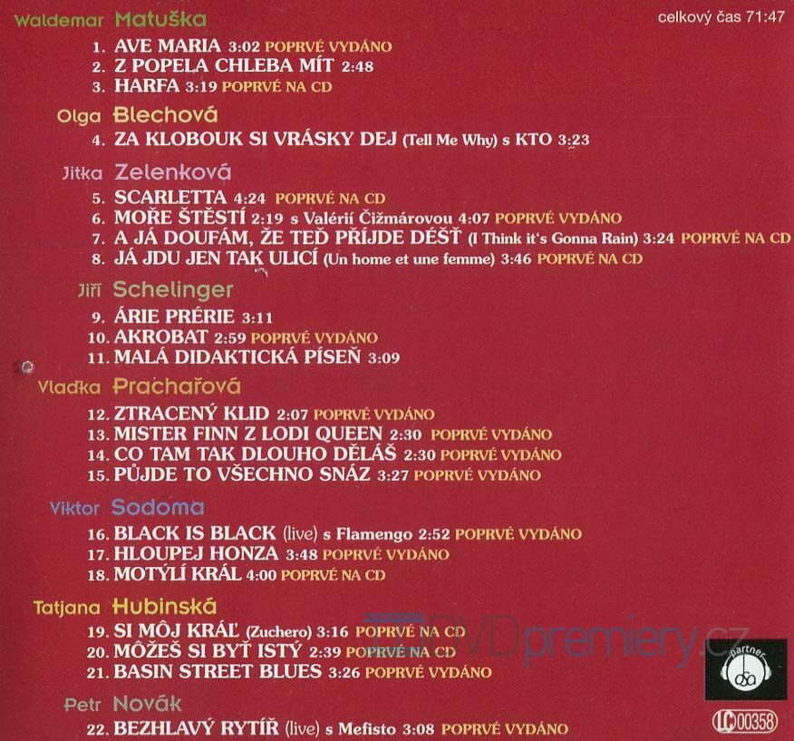 Tohle jsou jména vybraných interpretů: Waldemar Matuška, Jitka Zelenková, Jiří Schelinger, Vlaďka Prachařová, Viktor Sodoma, Tatjana Hubinská a jako bonus Petr Novák a Olga Blechová. Jejich archivní nahrávky byly posbírány z období od druhé poloviny 60. let do první poloviny let sedmdesátých.Kompilace obsahuje celkem dvaadvacet nahrávek. Polovina z nich je vydána zcela poprvé. Jiné vyšly kdysi na gramodeskách či o mn oho později v digitální podobě. Pocházejí z archivů Supraphonu, České televize, Českého rozhlasu, Slovenské RTVS a Opusu. Posluchače tak čeká mnohé hudební překvapení a možná si i nově objeví některého z interpertů.