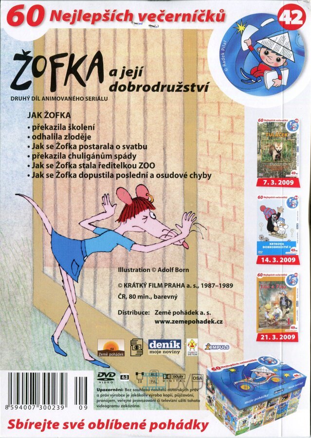 DVD film Žofka a její dobrodružství, Žofka a její dobrodružství 2, Žofka ředitelkou zoo [1992]. Český večerníček. Dolby Digital.