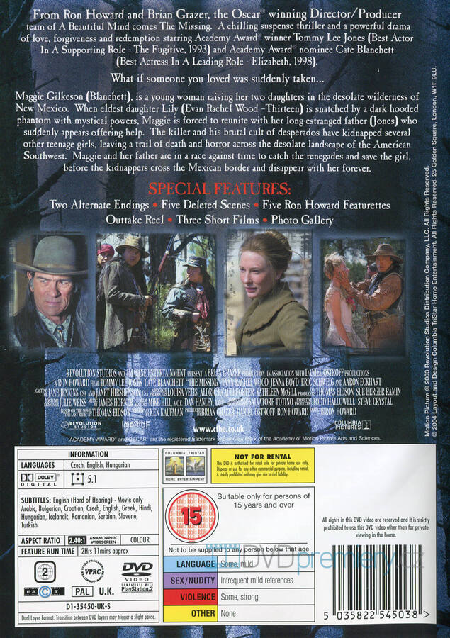 DVD film Ztracené [2003]. Dovoz. Český dabing. České titulky. Dolby Digital. Maggie s odcizeným otcem pátrá po unesené dceři v divočině Nového Mexika, čelí temné minulosti a děsivým událostem, které je změní.